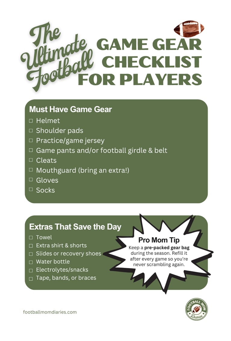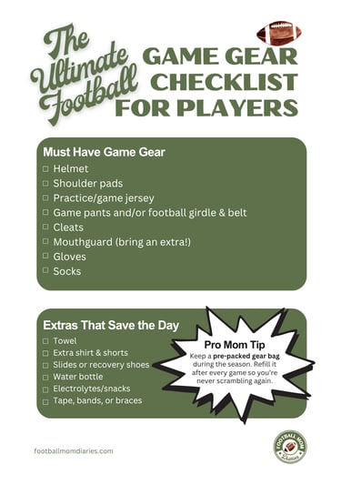 Download The Ultimate Football Game Gear Checklist for Players and keep it saved on your phone or printed for every game.